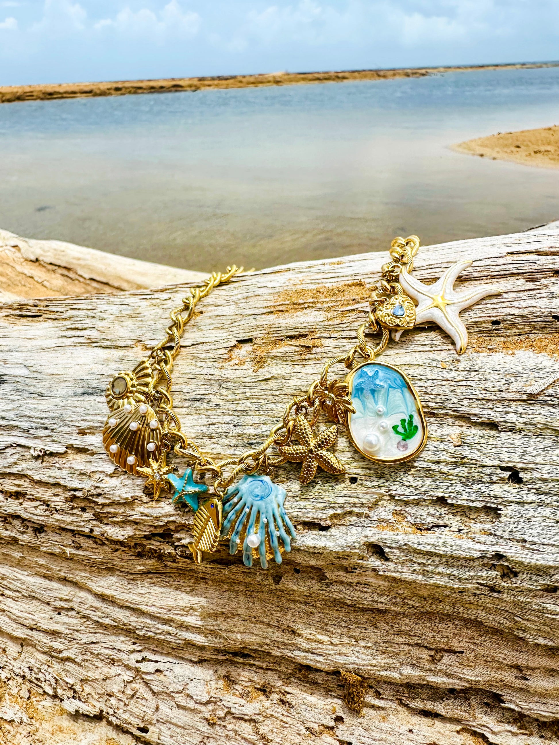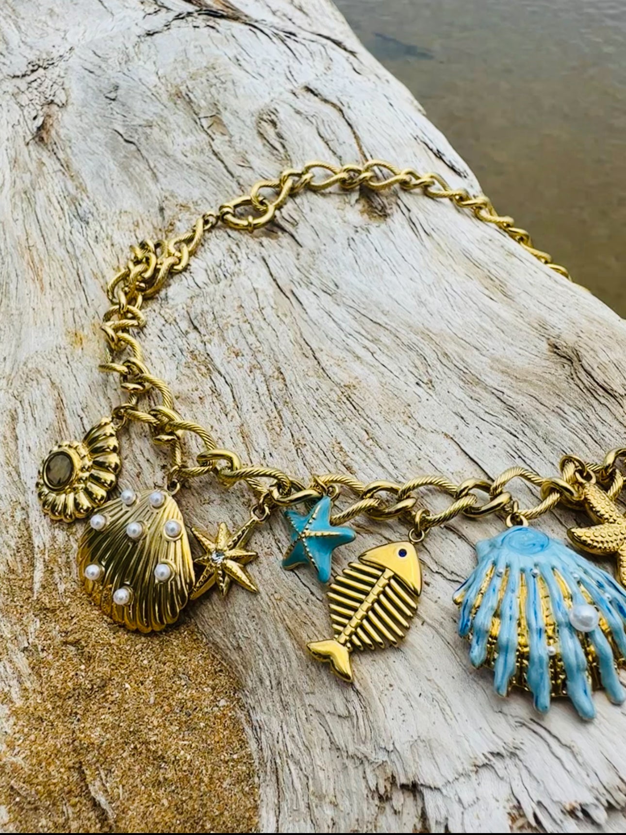 Elevate your style with our Ocean Vibe Charm Necklace. Embody the essence of the sea with a beautiful blue charm, perfect for any elegant occasion. Add a touch of sophistication and exclusivity to your look with this must-have accessory.
